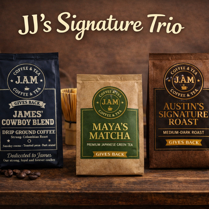 At J.A.M. Coffee & Tea, every cup starts with high-quality, ethically sourced coffee crafted for bold flavor and good vibes. We’re all about great taste and great purpose — because each bag you brew helps support local food banks in our community. From smooth, rich notes to that energizing first sip, we’re here for the people who can’t start their day without a truly great cup of coffee. Brew bold. Live bold. Do good — one cup at a time.